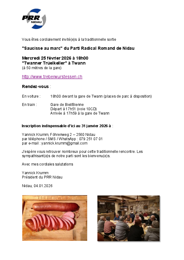 En voiture : 18h00 devant la gare de Twann (places de parc à disposition)